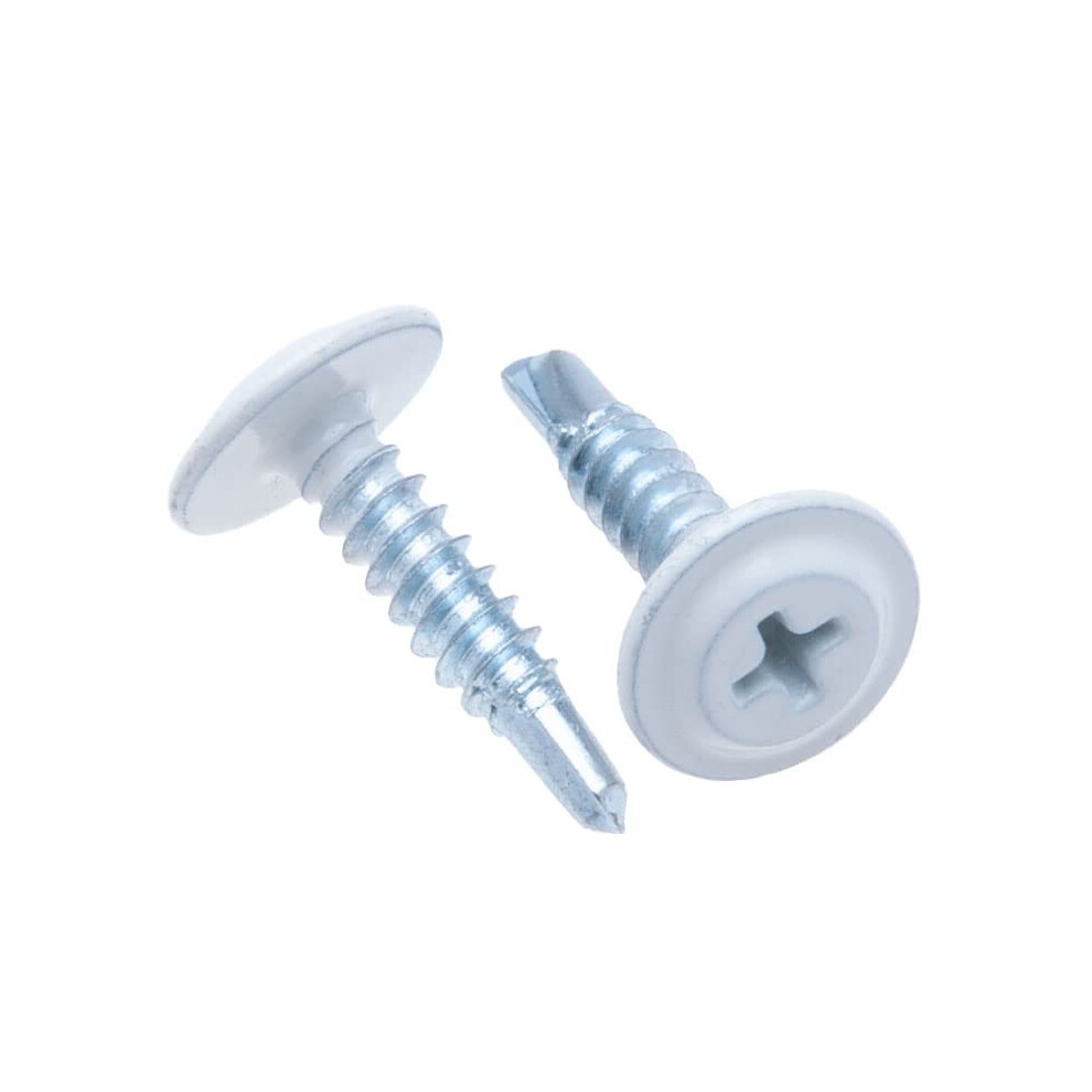 4.2 mm x 19 mm Multi-Color Self-Tapping, Self-Drilling Montage Screws Phillips, Fine Thread and Flat Head, Powder Coated RAL9002 Grey White, Hardened