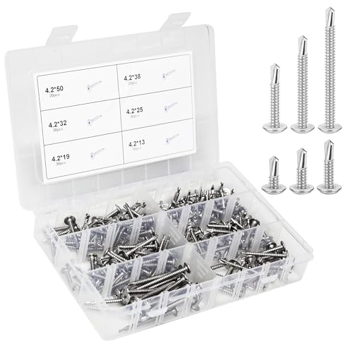 DN DENNOV 210pcs Self-Tapping Screws, Stainless Steel, M4.2 x 50mm/38mm/30mm/25mm/19mm/13mm, Phillips Head, Self-Drilling, Rust-Proof