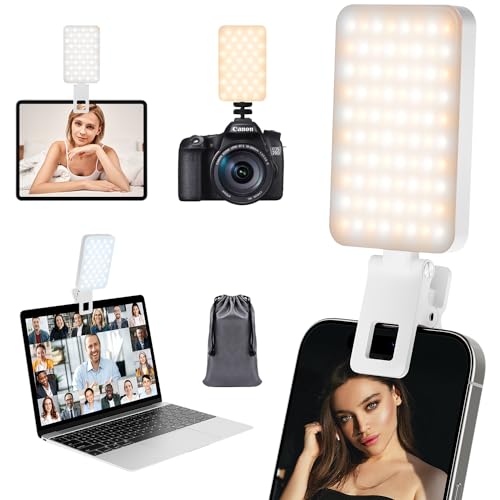 64 LEDs Selfie Light,3 Lights Modes Video Light Photo Light-Rechargeable Clip on Phone/Laptop/Camera Light-for Makeup,YouTube,TikTok Live Streaming,Photography Vlog/Pictures/Meetings-Warmer Atmosphere