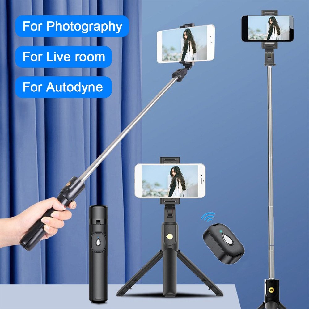 (a-Black) Universal Wireless Bluetooth Selfie Stick Tripod for iPhone Samsung Huawei Xiaomi Mobile Phone Selfie Stick Shutter 360 Rotating