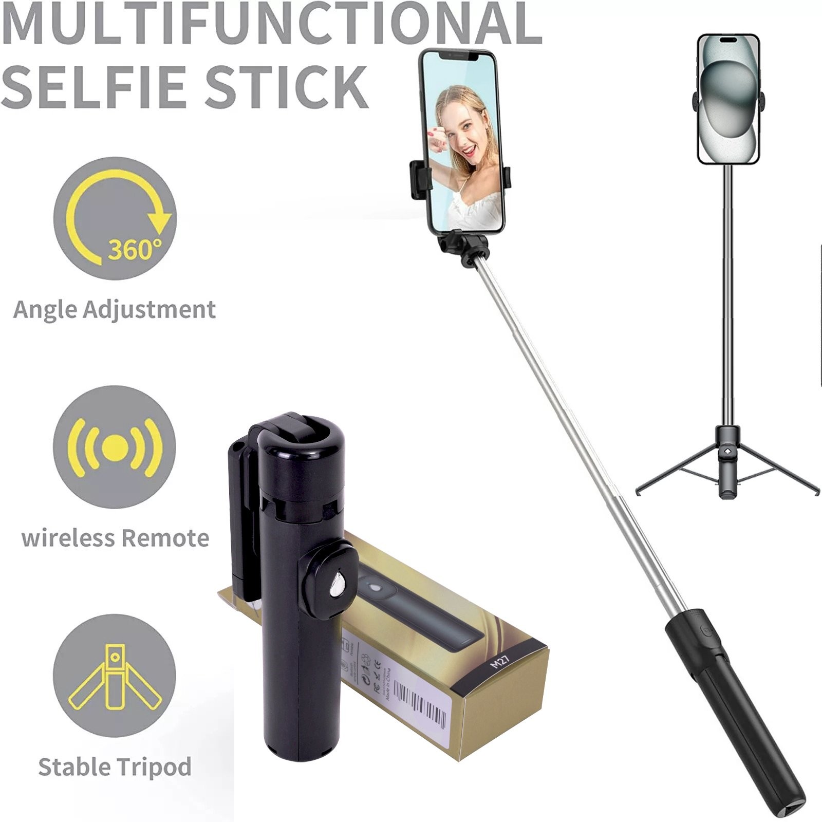 (a-White) Universal Wireless Bluetooth Selfie Stick Tripod for iPhone Samsung Huawei Xiaomi Mobile Phone Selfie Stick Shutter 360 Rotating