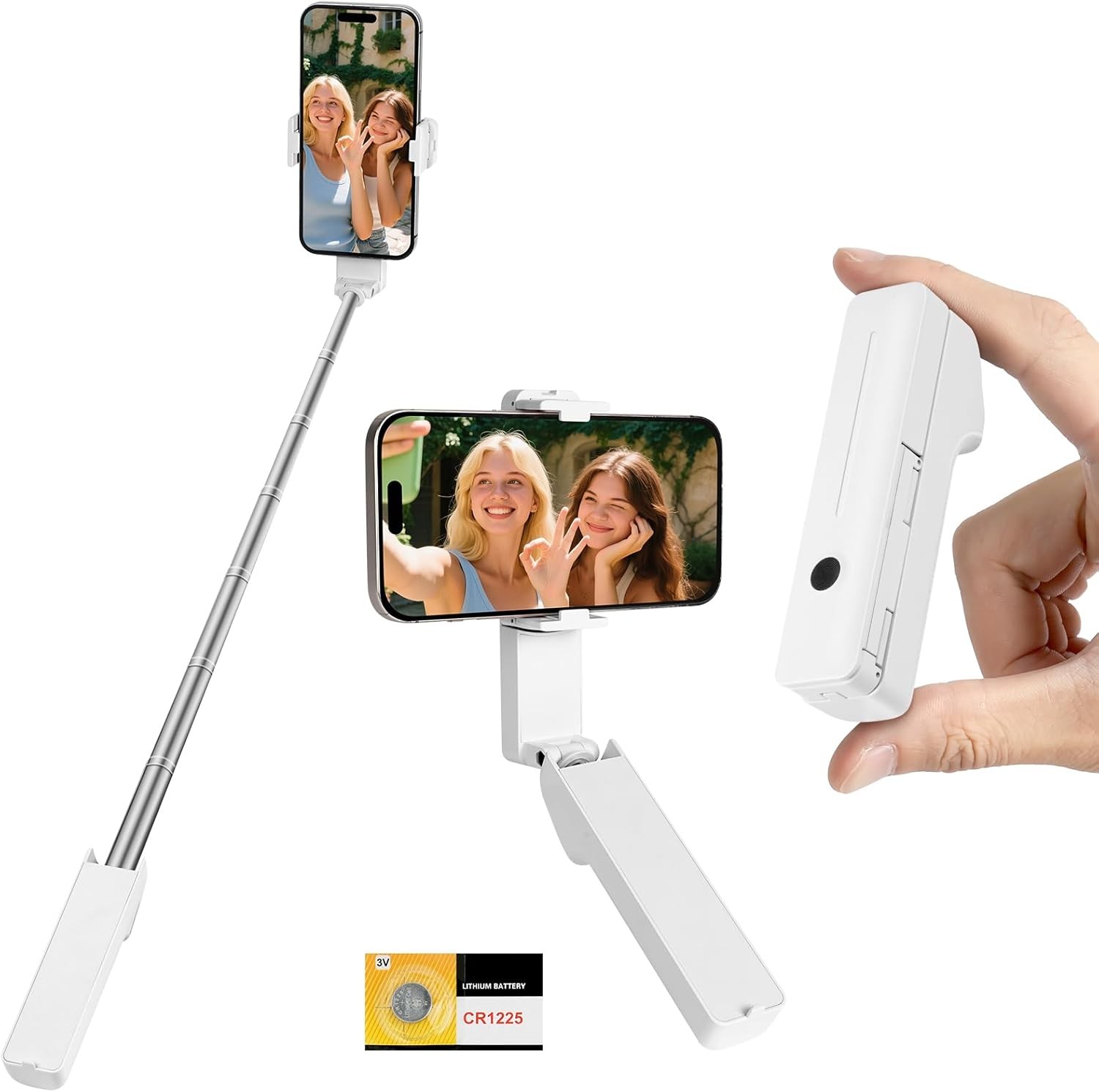 Adiwo Portable Pocket Selfie Stick, Extendable Mini Selfie Stick for 4-7" Phones, with Wireless Remote Control Button, Extends from 12-70cm, 109g Lightweight, for Live Streaming,Vlog,Content Creation