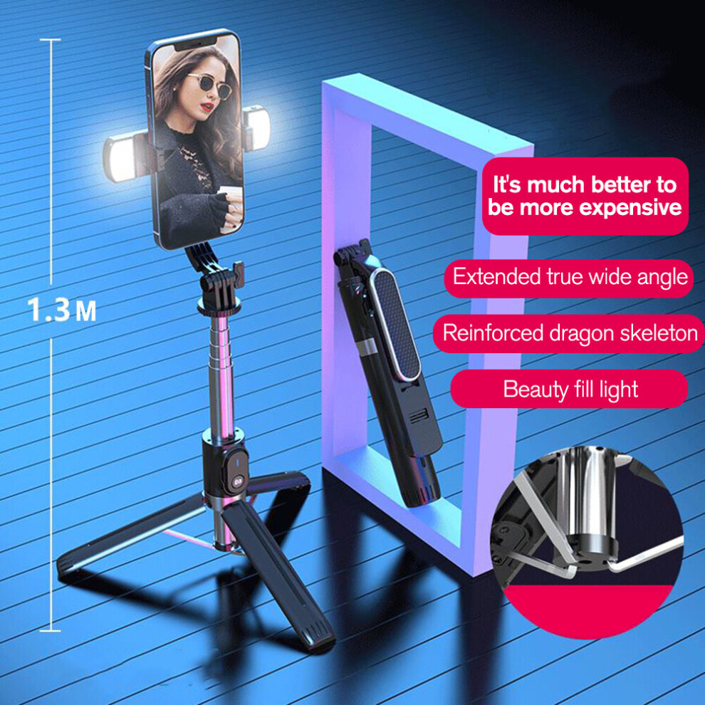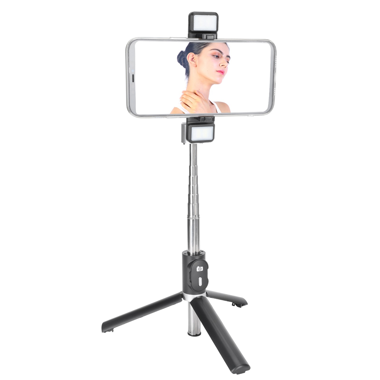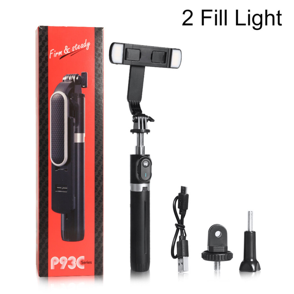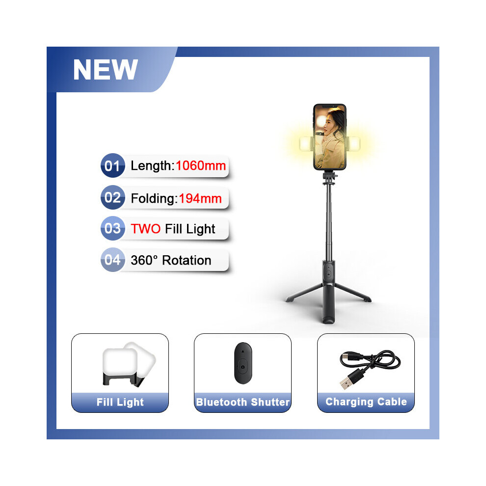 (a-With two fill light) Roreta 2022 NEW Wireless bluetooth selfie stick tripod with fill light shutter remote control for IOS Android smart phone