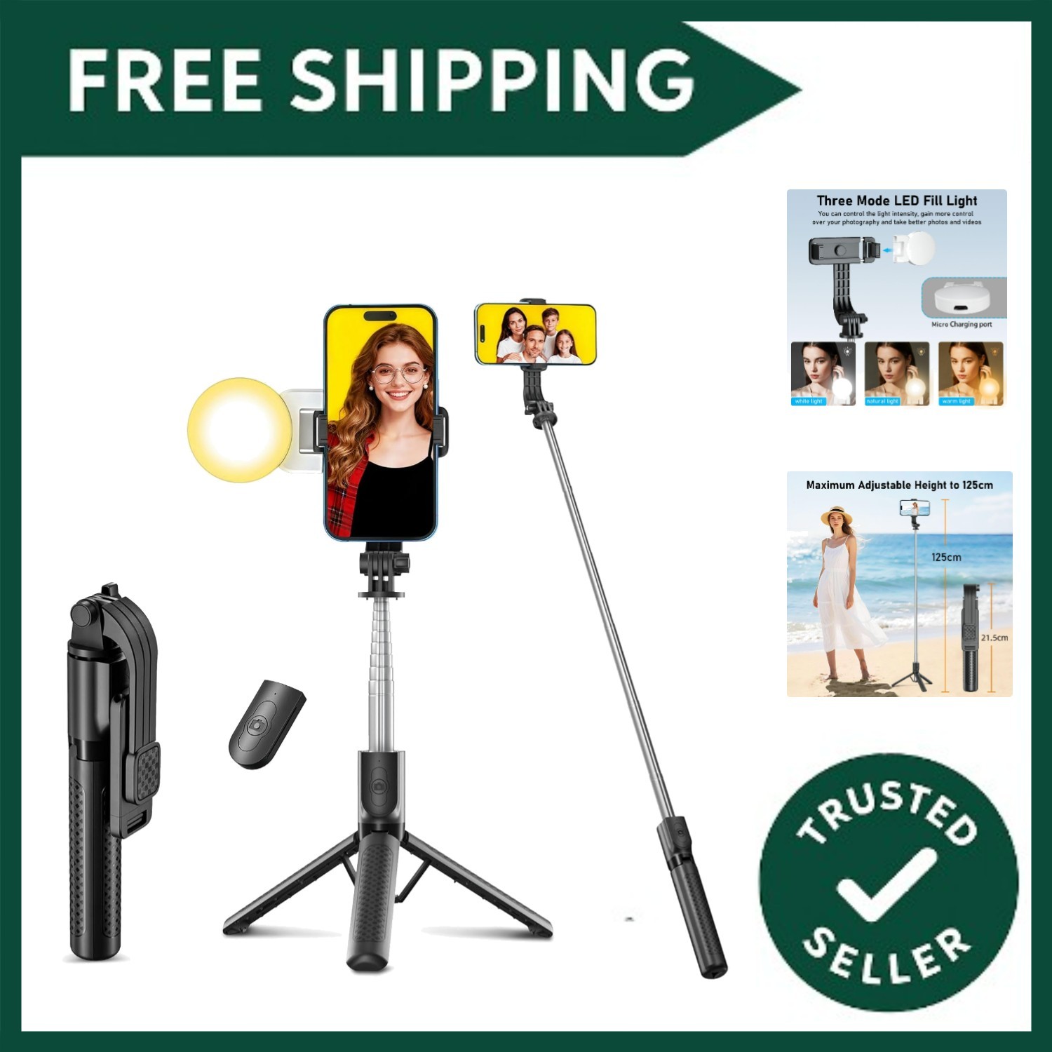 Selfie Stick Tripod with Fill Light,125Cm Portable Telescopic Selfie Stick with