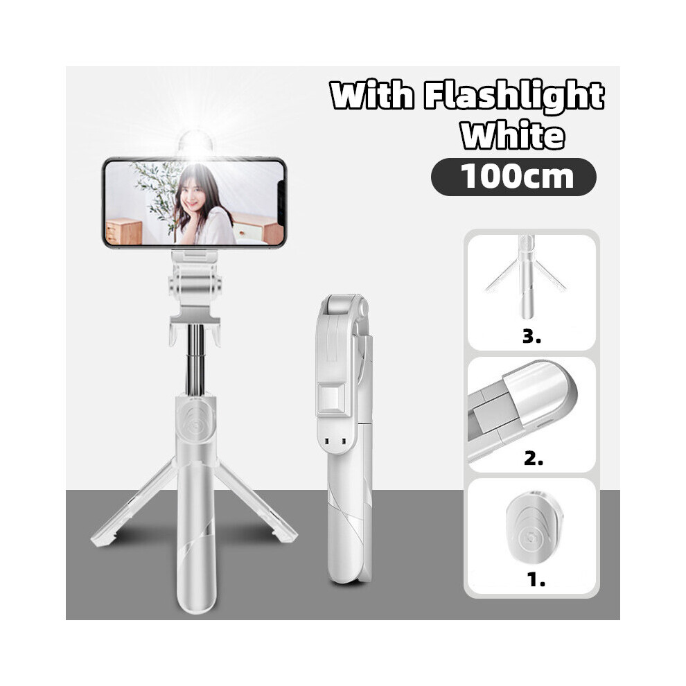 (a-White) Selfie Stick tripod with fill light shutter for IOS Android Wireless Bluetooth Handheld Gimbal Stabilizer Mobile Phone