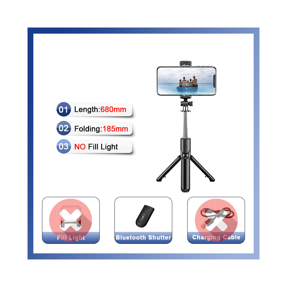 (a-small No fill light) Roreta 2022 NEW Wireless bluetooth selfie stick tripod with fill light shutter remote control for IOS Android smart phone