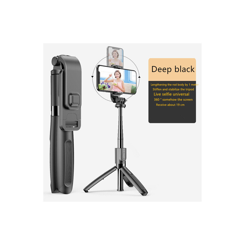 (a-Q10S 70CM Black) 2022 Bluetooth Stick Portable Zoom Tripod for Mobile Phone Selfie Stick With LED Light For Huawei Honor iPhone Android Xiaomi