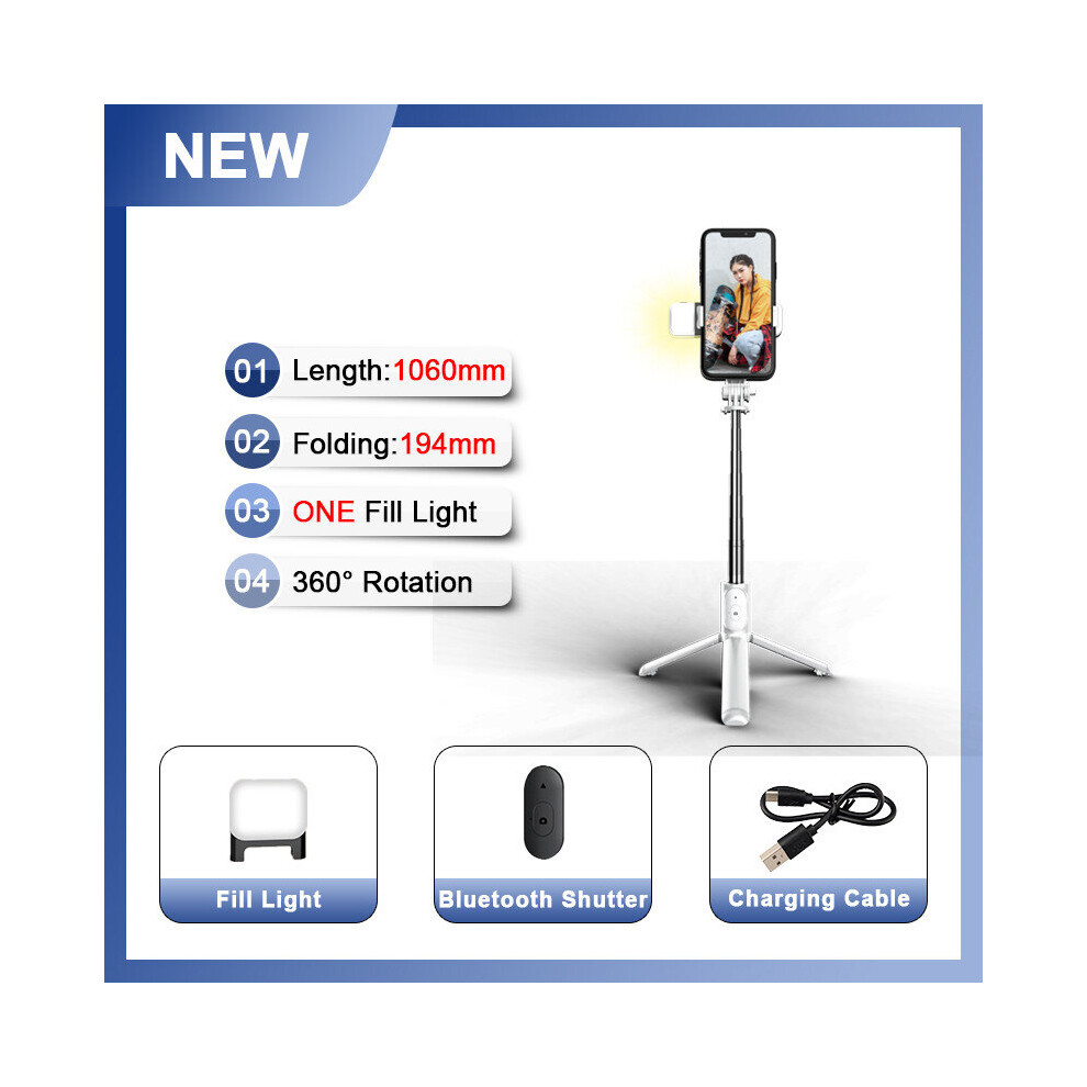 L03s Mobile Phone Bluetooth Selfie Stick with Fill Light Multi-function Camera Integrated Retractable Tripod Bracket
