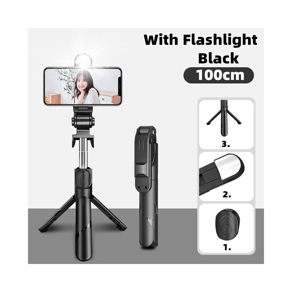 Black Tripod Selfie Stick With Light Mobile Phone Wireless Foldab SG