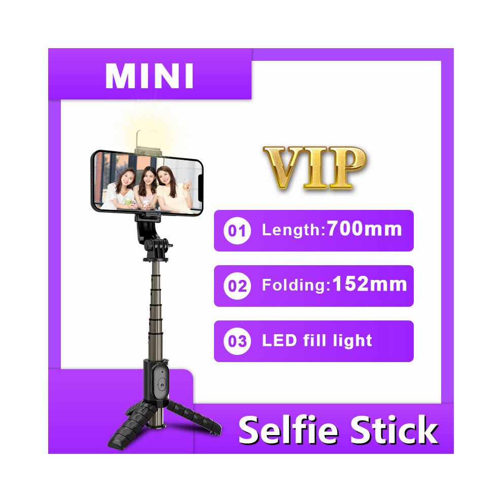 Tripod Selfie Stick With Light Mobile Phone Wireless Foldable Mini BS