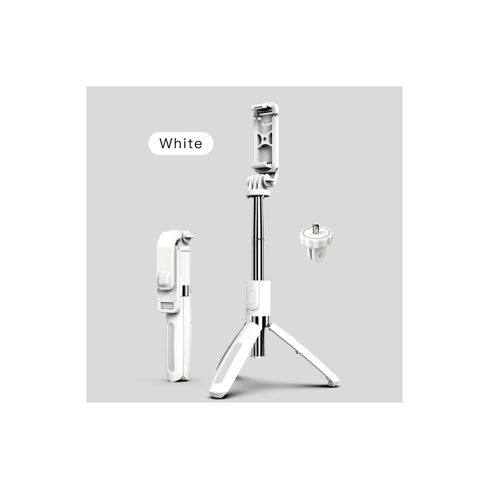 (a-Q10 68CM White) 2022 Bluetooth Stick Portable Zoom Tripod for Mobile Phone Selfie Stick With LED Light For Huawei Honor iPhone Android Xiaomi