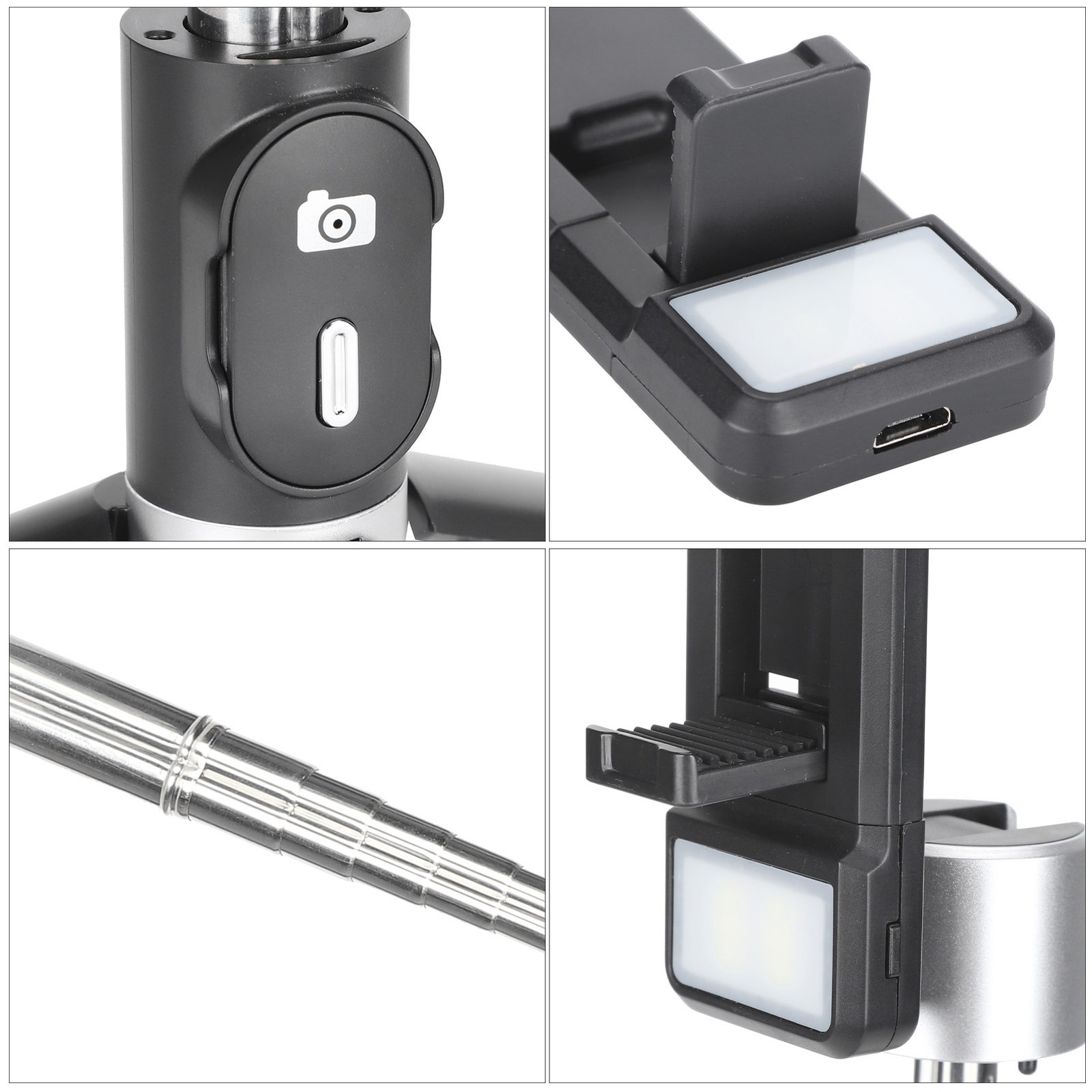 Black Selfie Stick Tripod With Light USB Rechargeable Telescopic SG