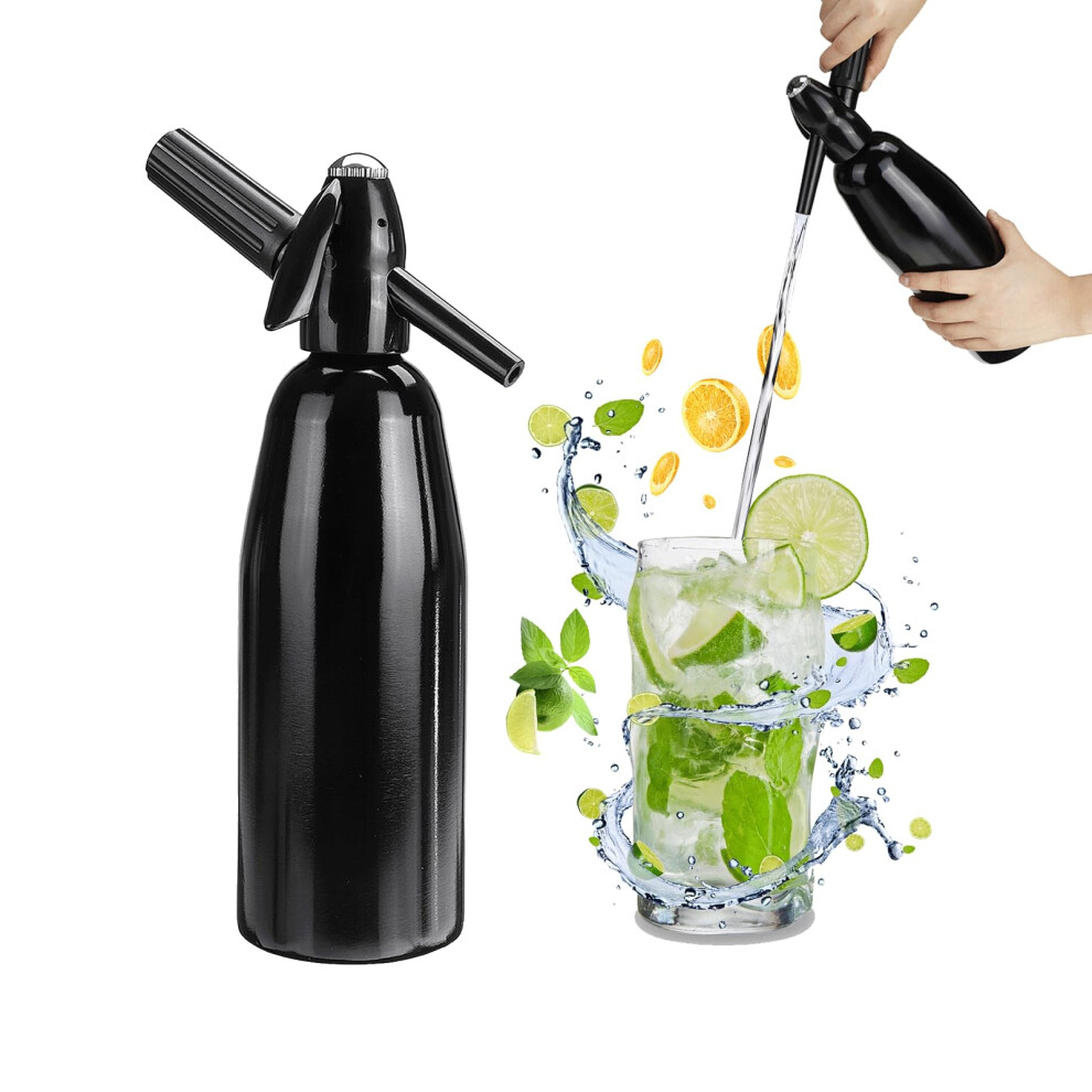 Portable Soda Maker 1L Aluminum Siphon For Sparkling Water Seltzer, Cocktails Mojitos Black No CO2 Cylinders Included