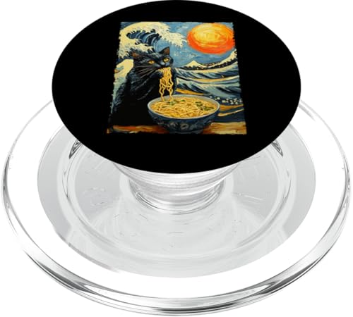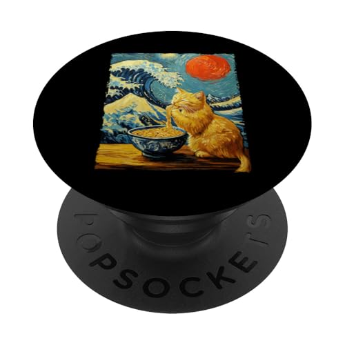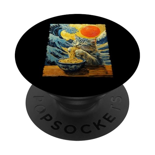 Cat Eating Ramen Van Gogh Artwork Wave Kanagawa Anime Cat PopSockets Adhesive PopGrip
