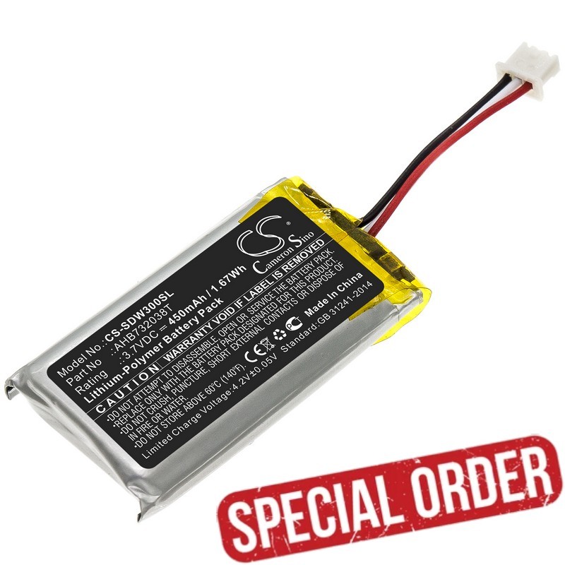1000807 AHB732038T 3.7V LiPolymer 450mAh Replacement Battery for Sennheiser Impact DW10 MB Pro1 SDW5033 Headsets