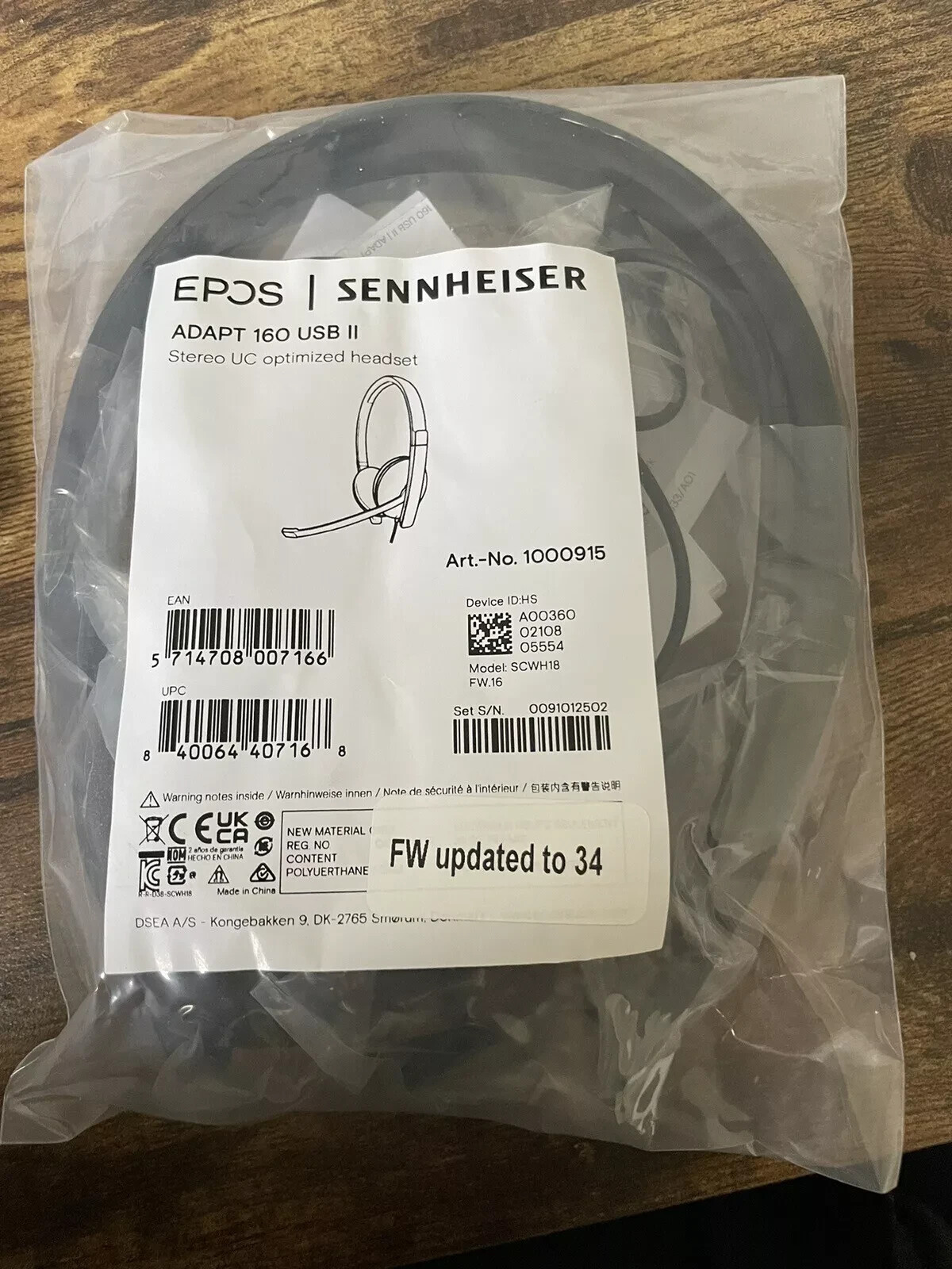 Sennheiser ADAPT SC 160 USB Stereo Headband PC Headset in Black 508315 - NEW
