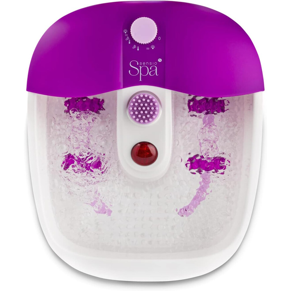 Sensio Spa Foot Spa Massager Pedicure Bath Nine accessories Pamper Your Feet with Heat Bubbles and Massaging Tools All In One Home Salon Therapeutic Massage Tub Pedicure Set White Purple