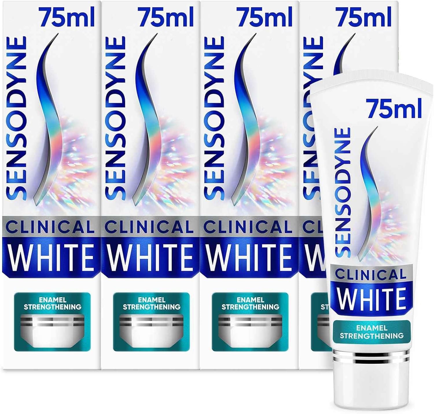Sensodyne Clinical White Toothpaste for Sensitive Teeth, Whitening, 4 x 75ml Pac