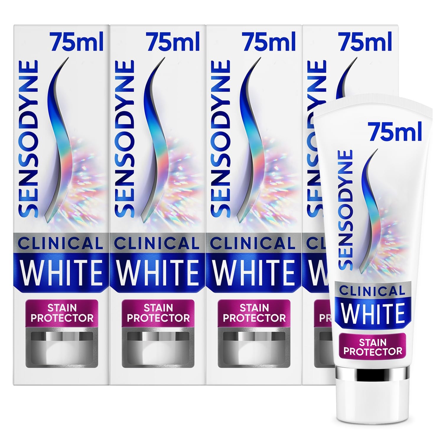Sensodyne Toothpaste Clinical White, Teeth Whitening Toothpaste for Sensitive Teeth, Stain Protector, Mint, Multipack 4 x 75ml