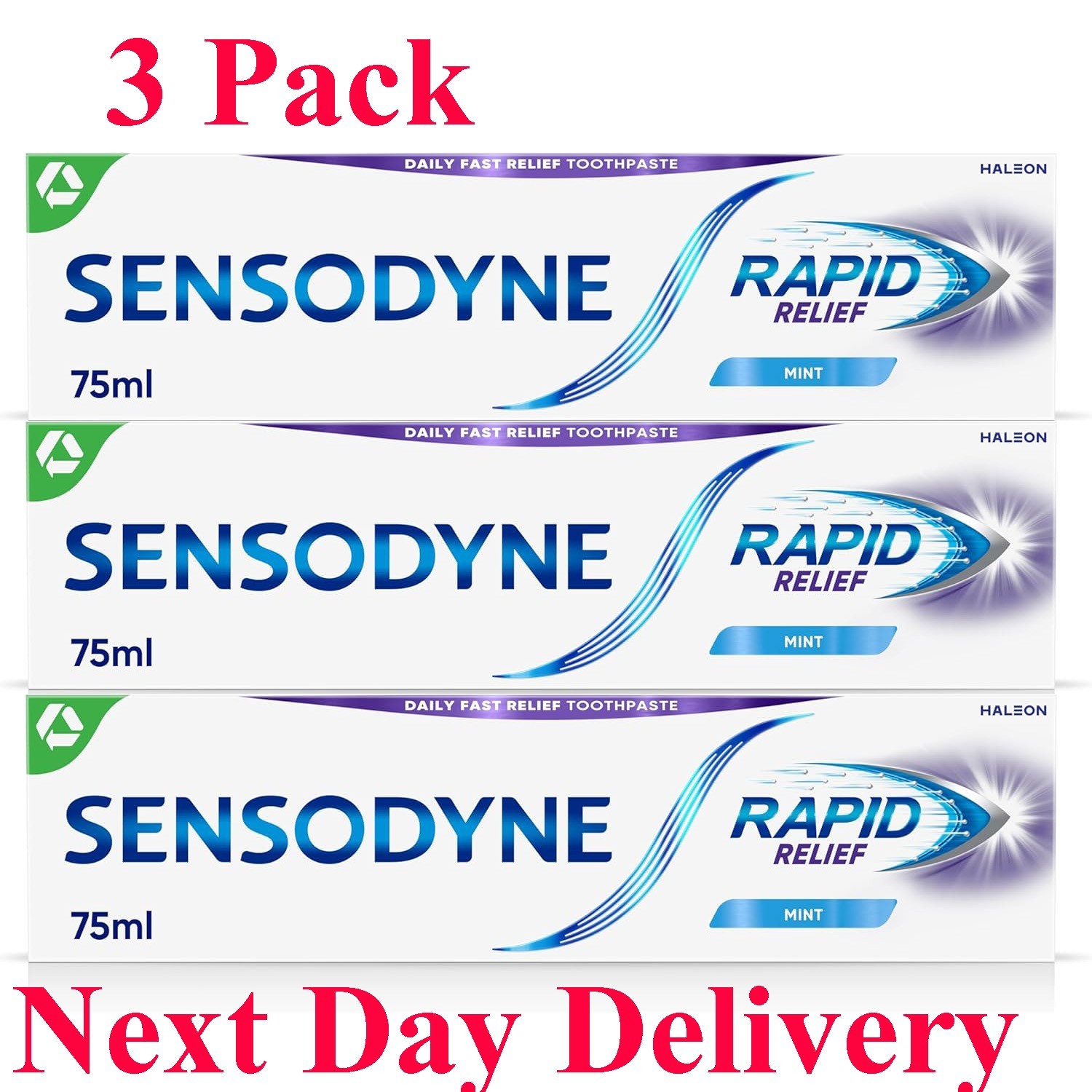 3 Pack Sensodyne Sensitive Toothpaste Rapid Relief & Protection Expert Recommend