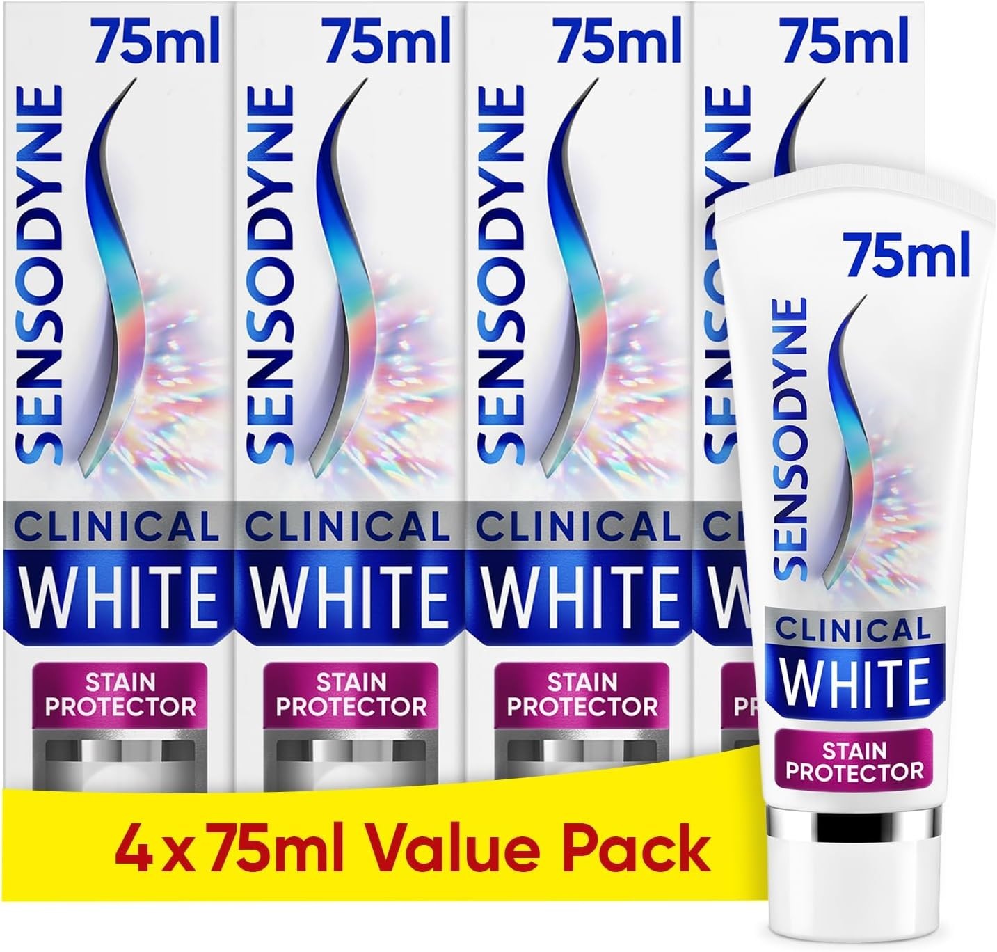 Sensodyne Toothpaste Multipack Clinical White, Teeth Whitening Toothpaste for Sensitive Teeth, Stain Protector, Mint, 4 x 75ml