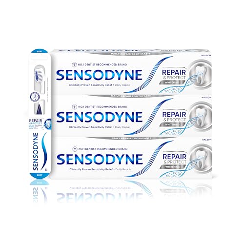 Sensodyne Toothpaste Repair and Protect, Teeth Whitening Toothpaste Multipack with Sensodyne Toothbrush, 3 x 75ml