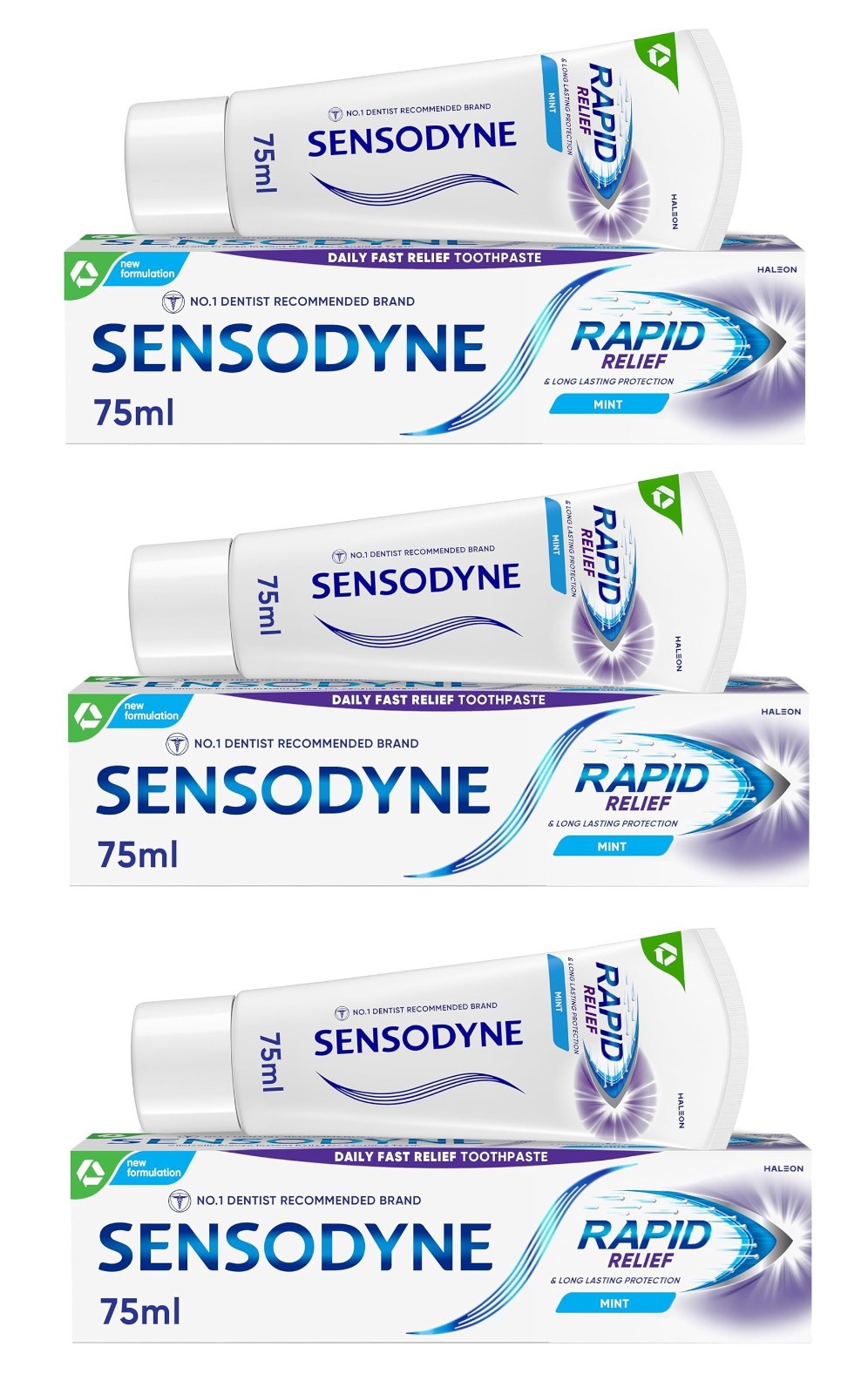 SENSODYNE RAPID RELIEF TOOTHPASTE DAILY FAST RELIEF SENSITIVE TOOTHPASTE 3X 75ML