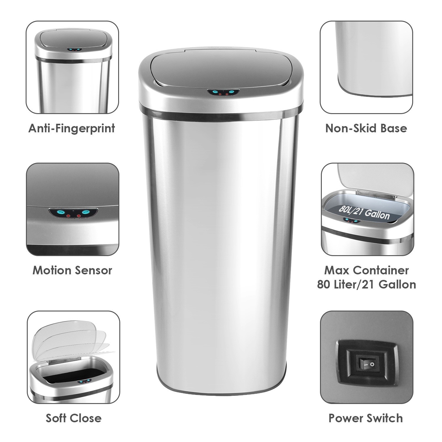 Large Touch-Free Stainless Steel Automatic 80L Motion Sensor Bin Trash Can