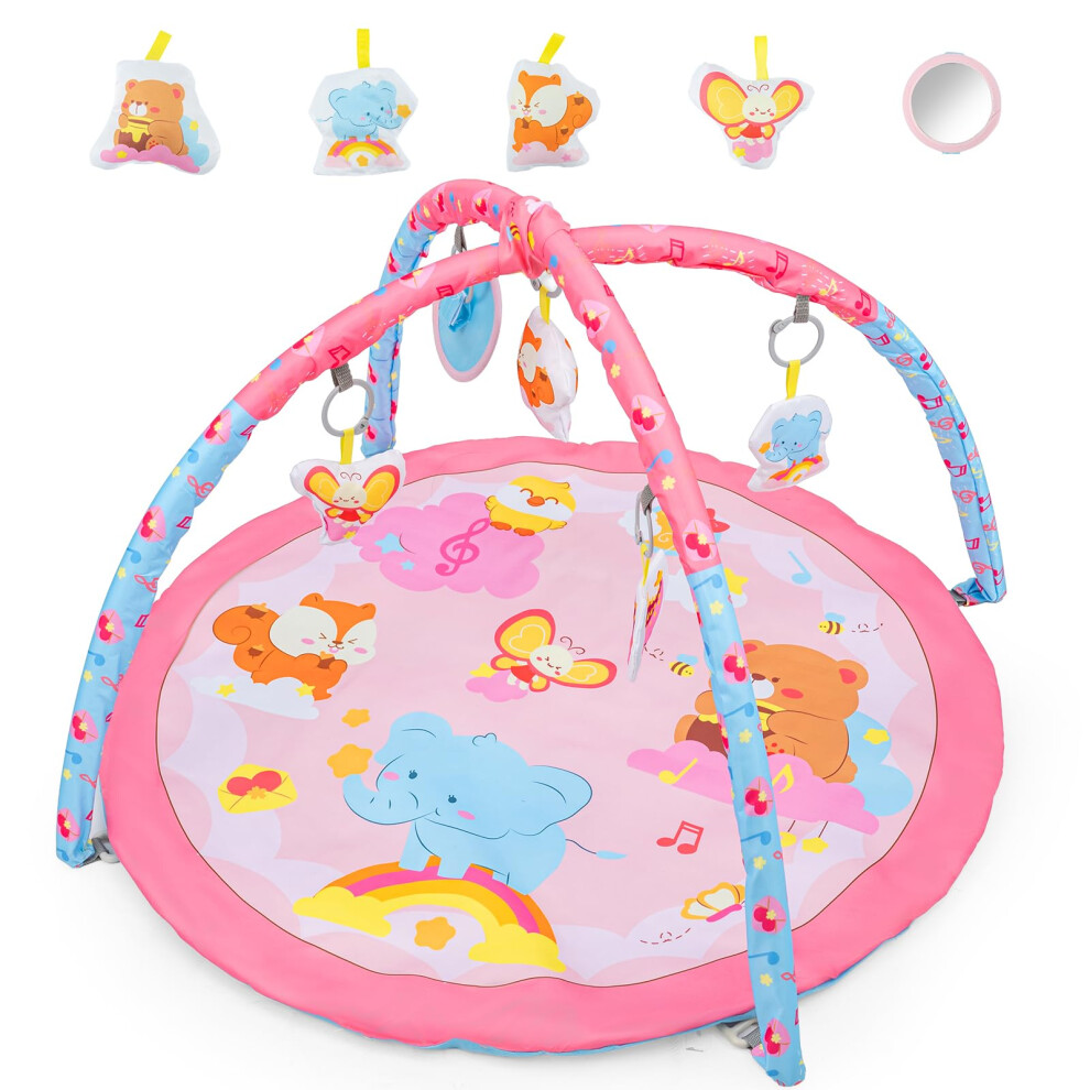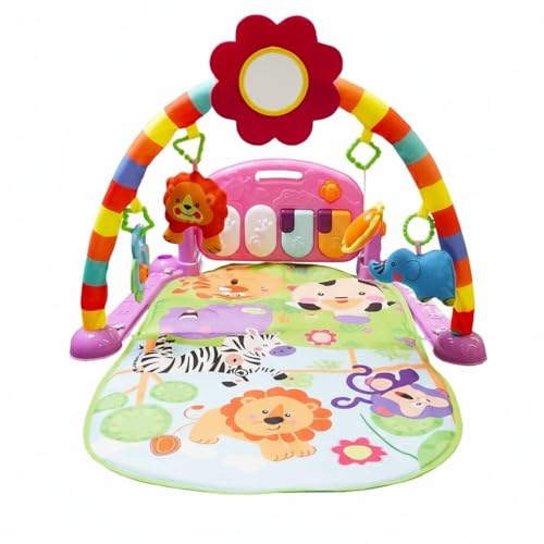 YIttings Babys Gym Play Mat, Kick Piano with 5 Removable Hanging Toys, Large Activity Gym, Tummy Pad Sensory Kids Toys, Non Slip Colorful Playmate, for Newborns Babys 0 to 3 6 9 12 Months (Pink)