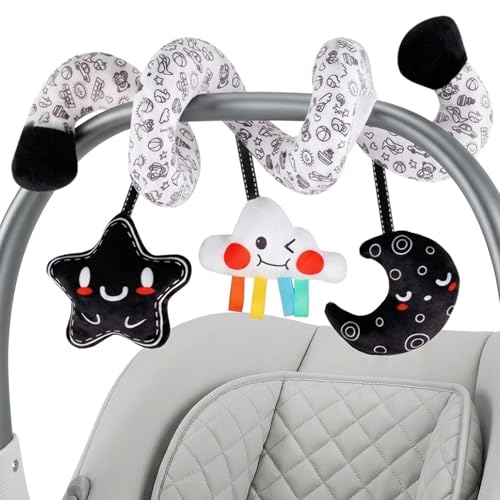 Elyebxj Carseat Toys Hanging, Spiral Car Seat Toy for Newborns 0-6 Months Crib Toys Hanging with Plush Animals for Visual Development & Sensory Exploration
