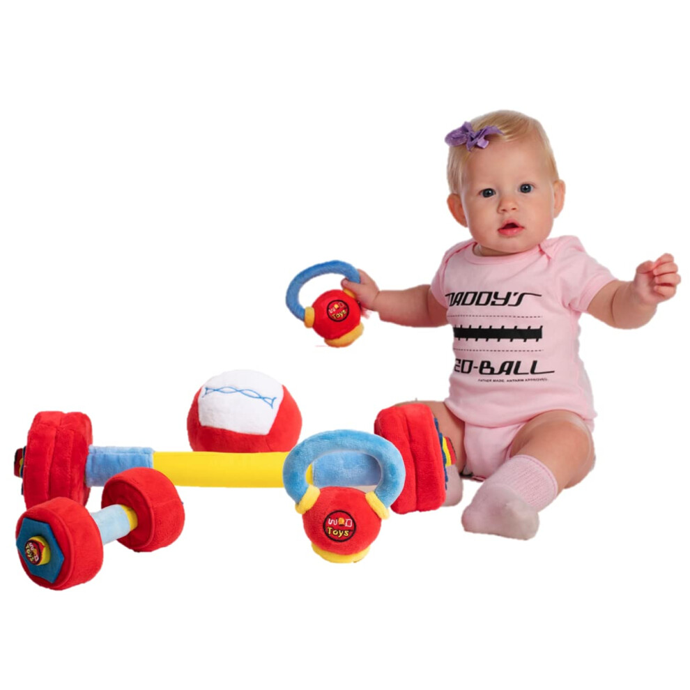 WOD Toys Baby Fitness Plush Set with Rattles & Sensory Sounds - Safe Durable Fitness Toys for Newborns Infants and Babies 0+