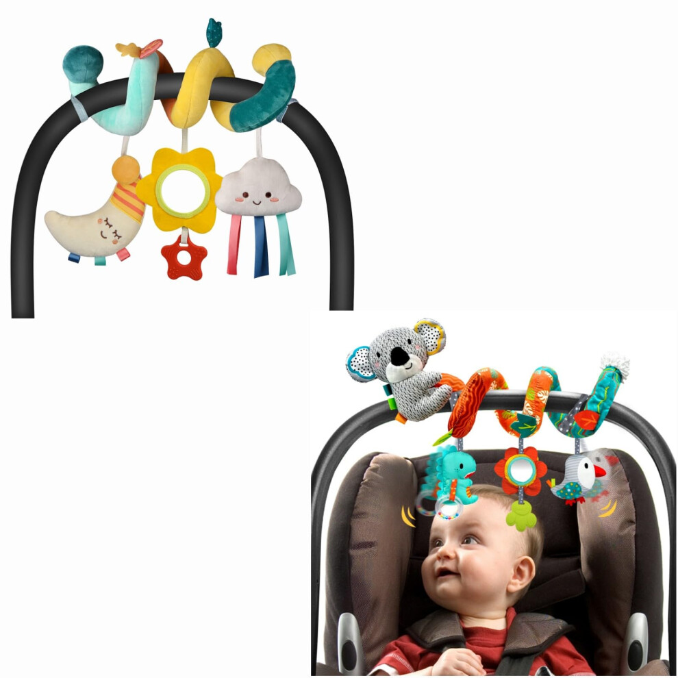 Temeemeg Carseat Toys Hanging, Spiral Car Seat Toy for Newborns 0-6 Months Crib Toys Hanging with Plush Animals for Visual Development & Sensory Exploration.