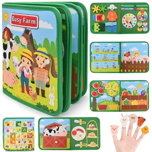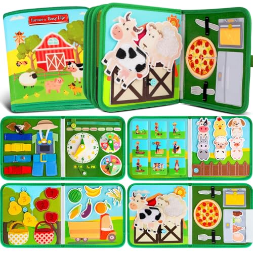 Quanquer Busy Board Book Montessori Toys for Toddler 1 2 3 4 Years Old - Farm Animal Sensory Book for Baby with Life Skills, Cognition, Sorting, Matching - Newborns' Birthday Gift for Kids Boy Girl