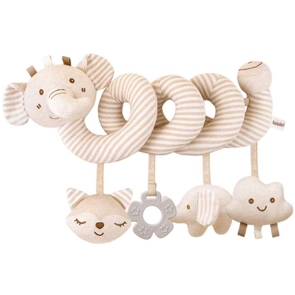 Baby Stroller Toy, Spiral Plush Animals, Hanging Crib Toys with Squeaker, Sensory Activity for Newborns 0-6 Months, Elephant Design