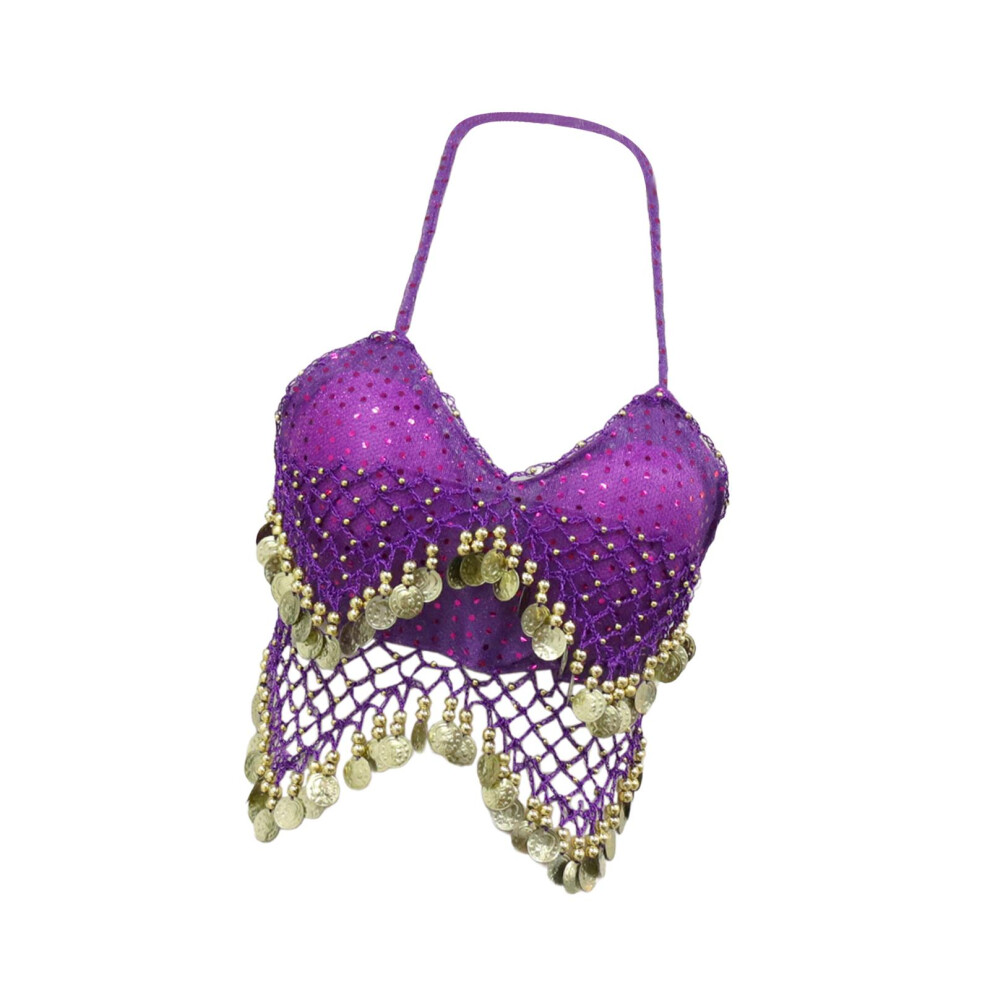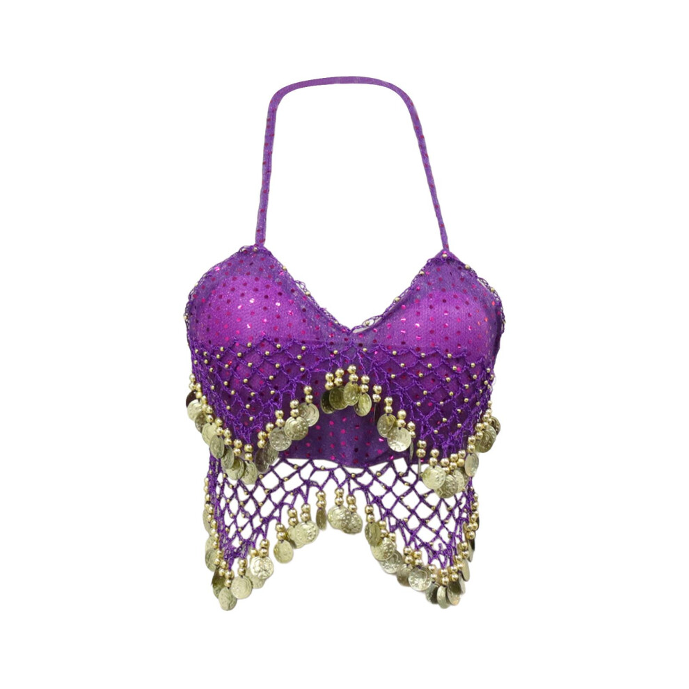 (Purple, Length 30cm) Low Cut Sequin Tube Top Vest Womens Shimmer Belly Dance Performance