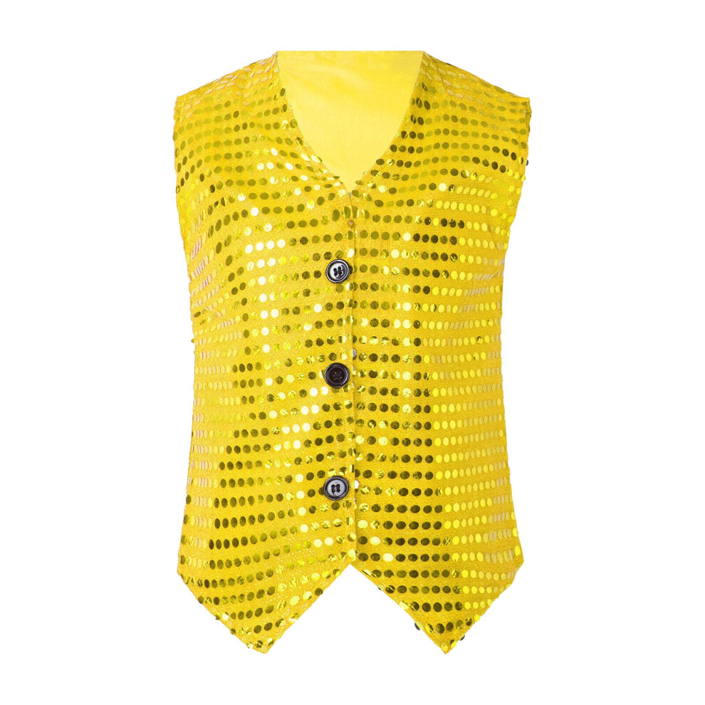Boys Girls Sequin Vest Jacket Kids Shiny Sequins Latin Jazz Disco Vest Top Street Dance Waistcoatfor Party Fancy Show Role Play Dress Up for Children (1-Yellow, 10-12 Years)