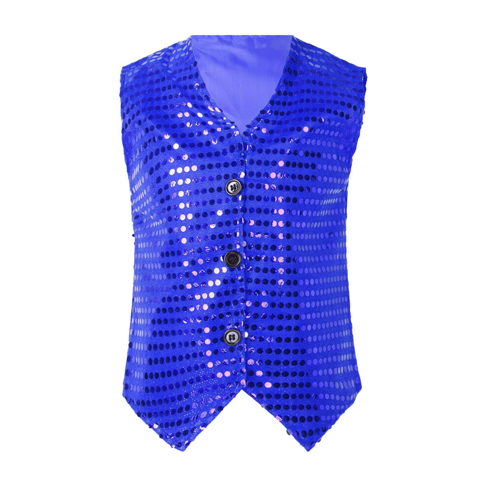 Boys Girls Sequin Vest Jacket Kids Shiny Sequins Latin Jazz Disco Vest Top Street Dance Waistcoatfor Party Fancy Show Role Play Dress Up for Children (10-12 Years)