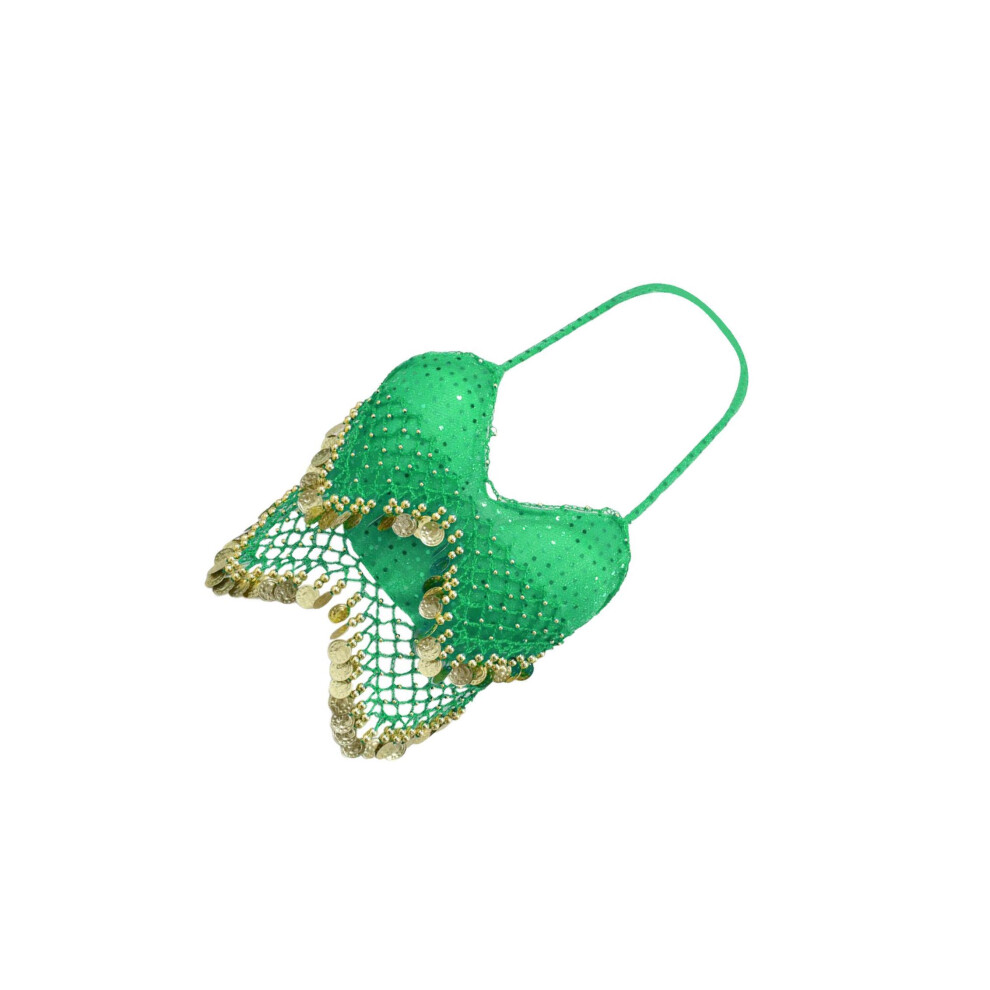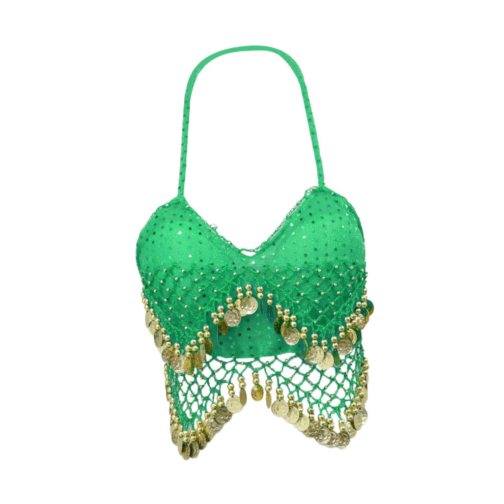 (Green, Length 30cm) Low Cut Sequin Tube Top Vest Womens Shimmer Belly Dance Performance