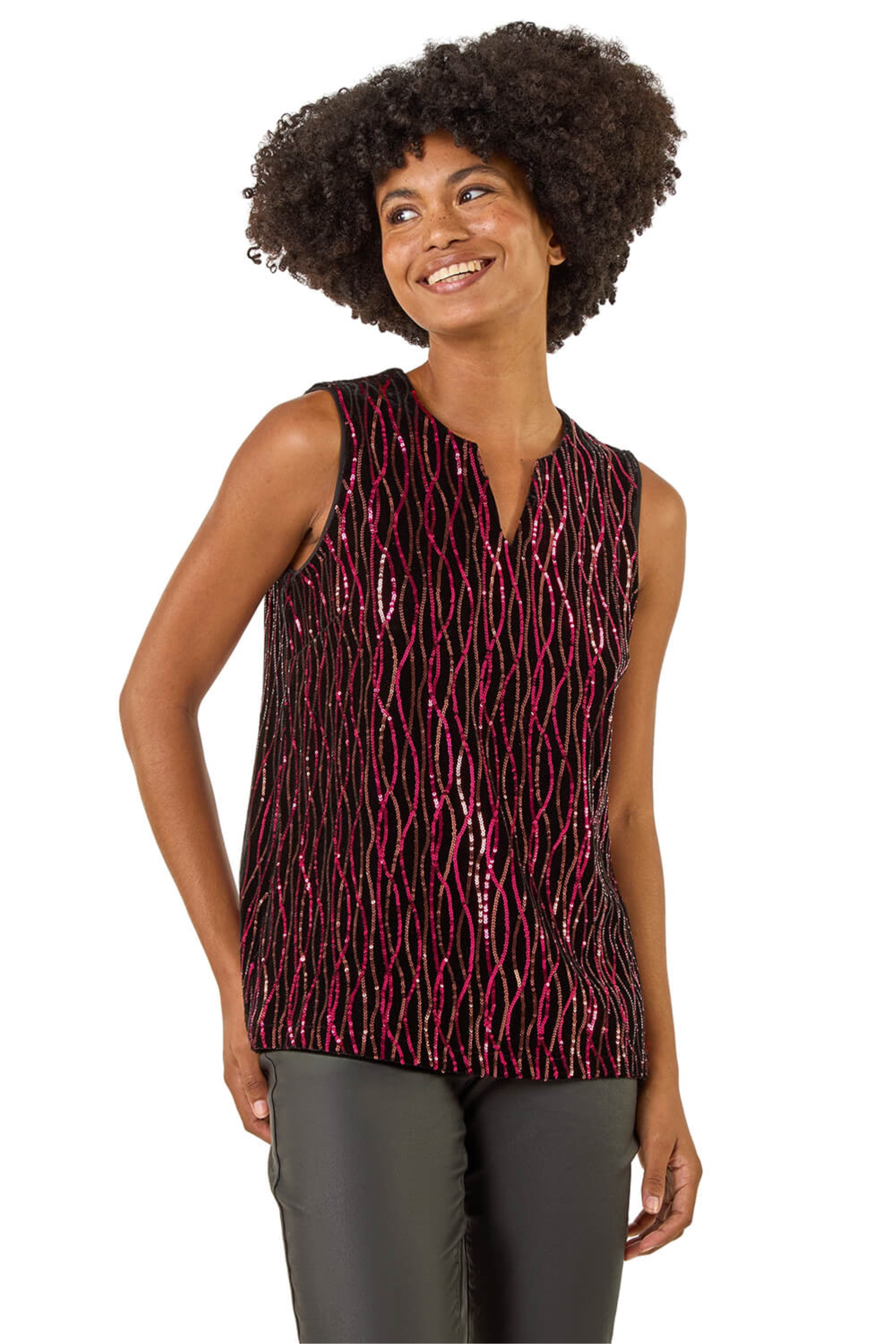 Roman Womens Sequin Velvet Vest Top - Fuchsia - Size 12 UK