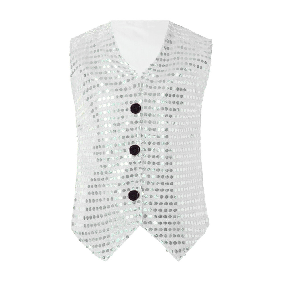 Boys Girls Sequin Vest Jacket Kids Shiny Sequins Latin Jazz Disco Vest Top Street Dance Waistcoatfor Party Fancy Show Role Play Dress Up for Children (5-Silver, 5-6 Years)