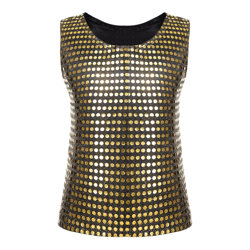 KUIH Sequin Tops for Women UK Sparkly Sequin Vest Top Womens Shimmer Tank Tops Glitter Cami Tops Ladies Sleeveless Tops Loose Fit Camisole Vests Tunic T Shirts for Night Club Party Gold