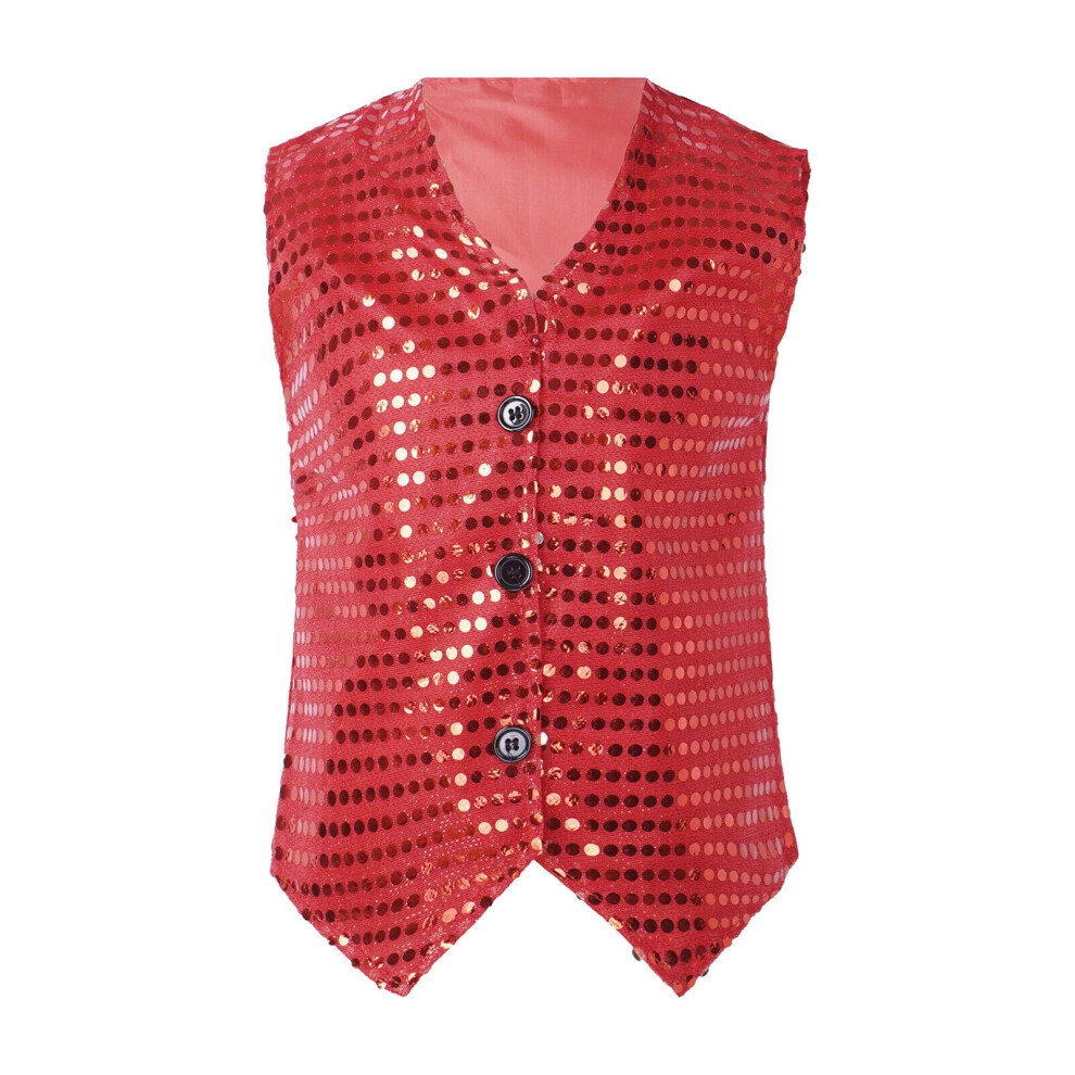 AWZXDE Boys Sequin Glitter Vest Top For Performance Stage Show Party Celebration Dance Wear And Kids Vest Apparel For Youth Red,16Years