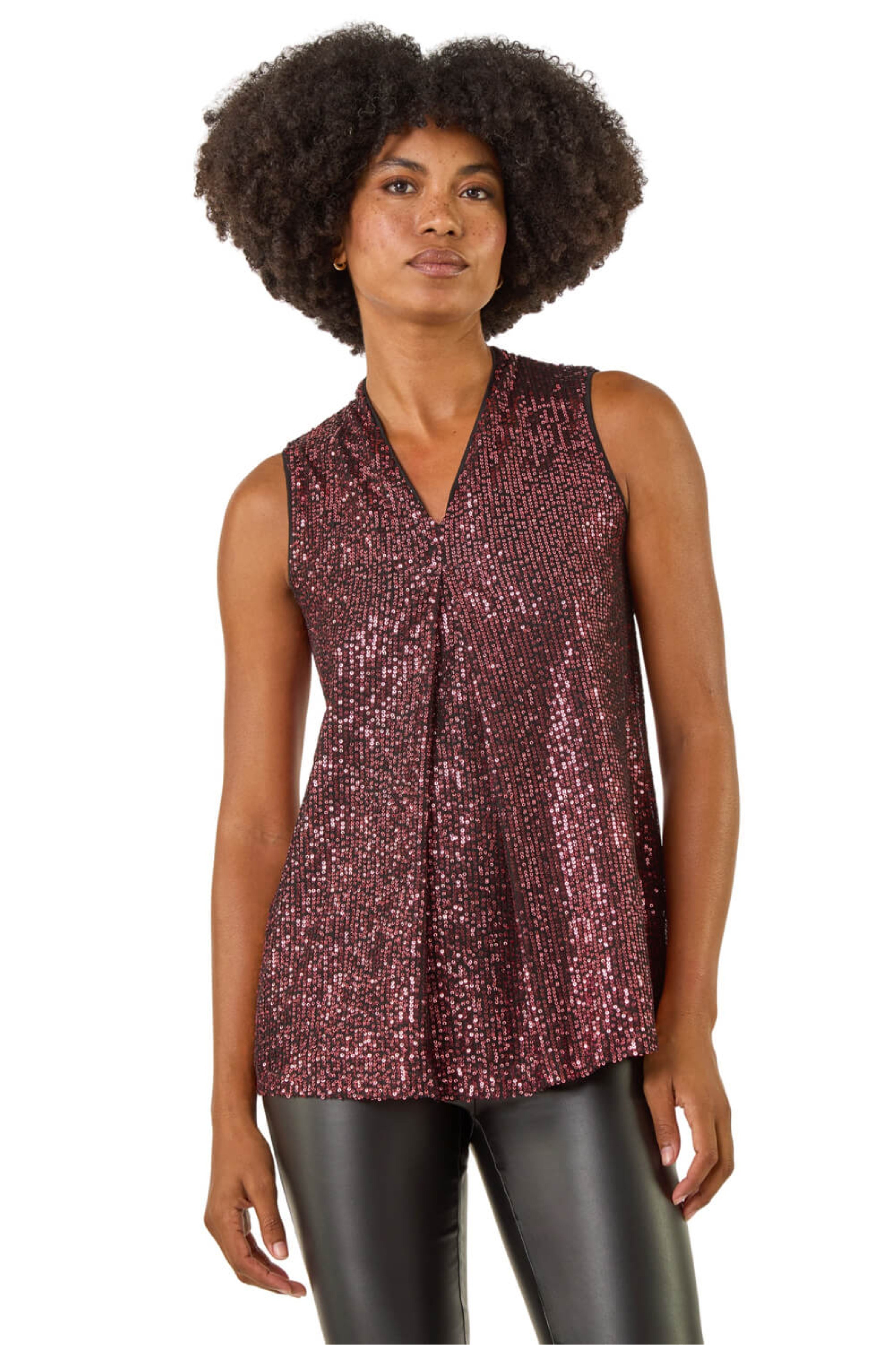 Roman Womens Sequin Pleat Front Vest Top - Rose - Size 12 UK