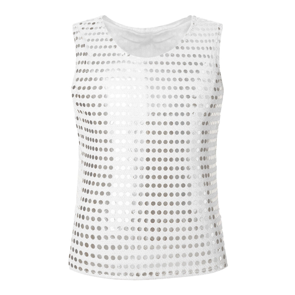 AWZXDE Sequin Sleeveless Vest Top for Toddler Girls & Boys â Party/Carnival Stage Outfit, Silver, 10â12 Years, Compatible with Kids'