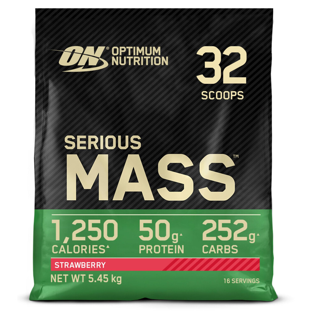 Optimum Nutrition Serious Mass Protein Powder with Creatine, Glutamine, 25 Vitamins and Minerals, Strawberry Flavour, 16 Servings, 5.45KG