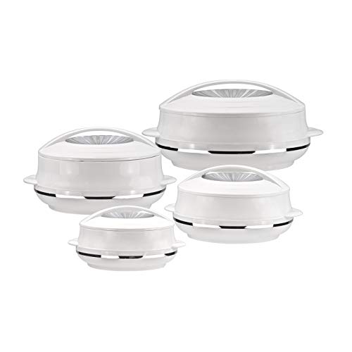 Insulated Serving Dishes with Lids - Small 4 Piece Olympic Thermal Hot Food Containers Set 0.8, 1.2, 1.6 and 2.5Liters, White
