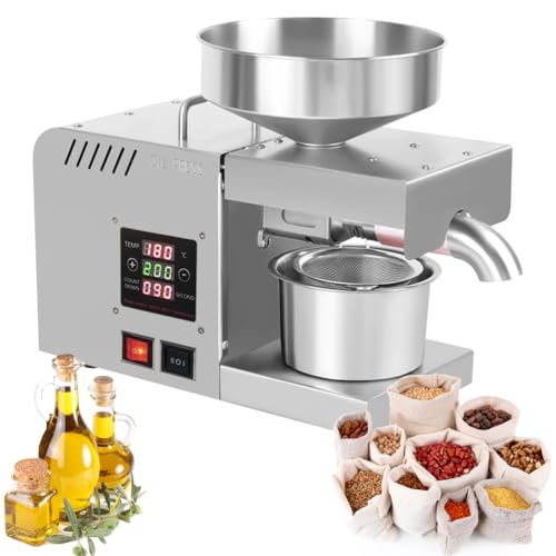 AGGBDYXO 820W Electric Oil Press Machine, Home Use Cold Press Seed And Nut Oil Extractor Machine for Peanuts, Sesame, Sunflower Seeds, Compact Countertop Oil Expeller
