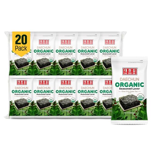 DAECHUN(Choi's1) Organic Seaweed Snack, 20 Pack, Organic Olive Oil, Organic Sesame OIl, Vegan, Keto, Gluten-Free, Product of Korea