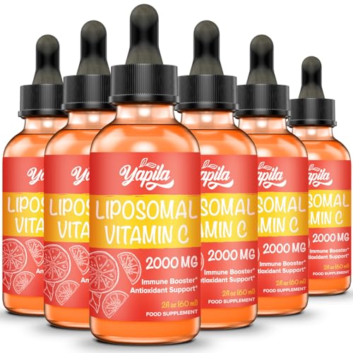Liposomal Vitamin C 2000 mg Liquid Supplement(6 Bottles), Maximum Absorption, High Strength Vegan VIT C, Ascorbic Acid, Non-GMO, Gluten Free, Soy-Free