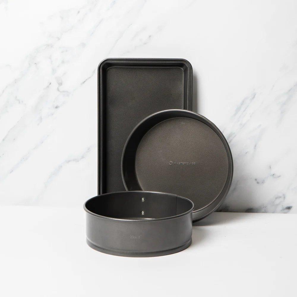 3pc Non-Stick Baking Set with 20cm Spring Form Round Pan, 34x20x4cm Brownie Pan and 23cm Deep Pie Pan